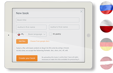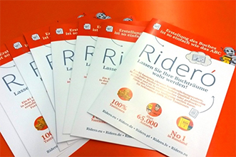 Автор загружает текст и изображения и получает готовую книгу — бумажную и электронную. Rideró создаёт для книги отдельный сайт и по желанию автора бесплатно публикует в магазинах или печатает тираж.