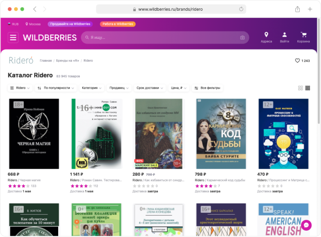 Книги авторов Rideró по технологии печать по требованию начали продаваться на крупнейшем маркетплейсе Wildberries.